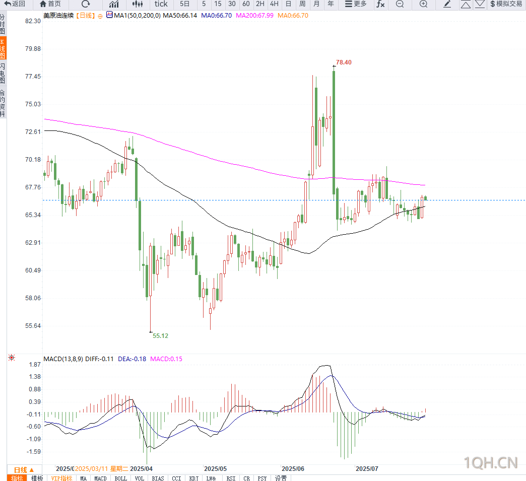 反之,如跌破支撑位65.20美元,短期内或将陷入横盘震荡甚至回调格局。整体来看,技术图形与地缘政治共振,支撑油价保持偏多走势。