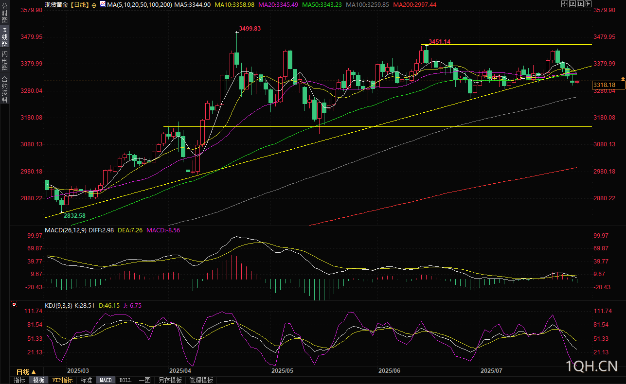 周一美元录得5月初以来最大涨幅,7月份有望上涨近1.5%,实现年内首次月度上涨。这导致黄金价格连续第四天下跌,周一触及三周低点,现货黄金最低曾触及3301.75美元/盎司。周二亚市美元多头暂时休整,等待美联储利率路径的进一步线索。