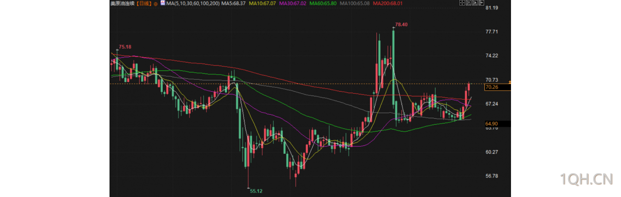将于周四到期的9月布伦特原油期货收涨1.01%,结算价报每桶73.24 美元。美国原油期货上涨1.14%,结算价报 70 美元。投资者基本上摆脱了美国原油和成品油库存数据的影响。盘中稍早,两大指标均下跌近 1%。