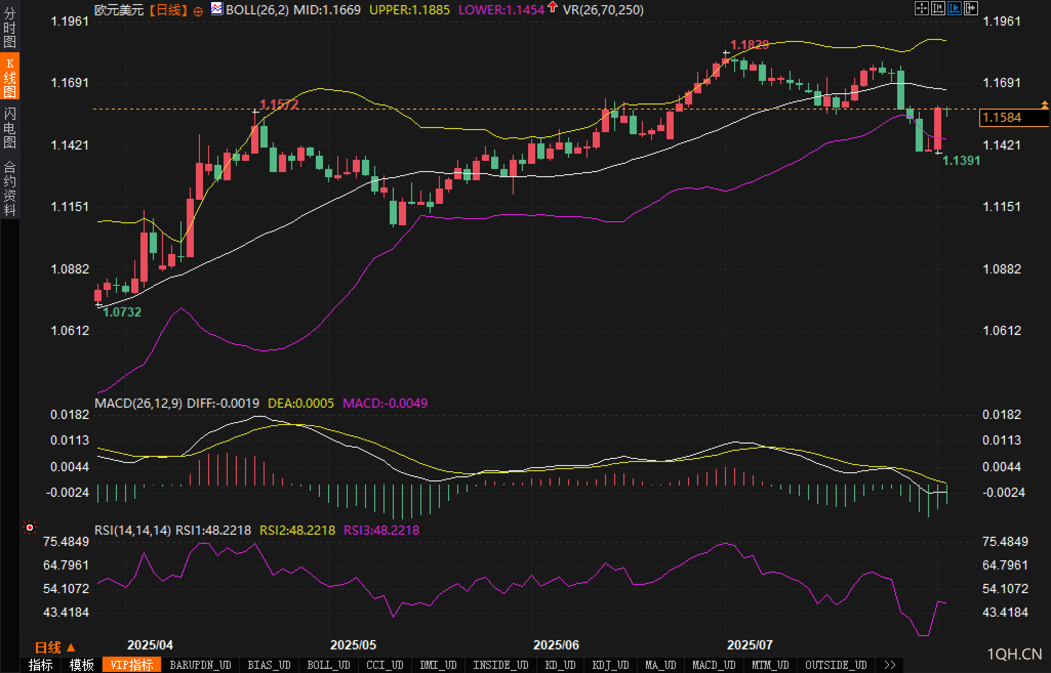 从中期来看,分析认为除非美国经济数据继续连续走弱、联储明确释出9月降息信号,否则欧元仍难以展开单边上涨趋势;技术上布林带开口尚未明显扩张,仍属区间波动初期,若后续欧美经济数据继续分化,汇价或将再次考验1.1454下轨支撑。,