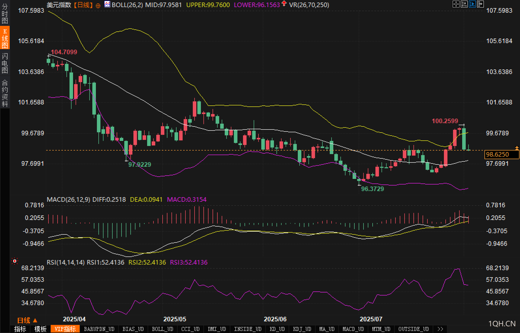 同时,市场存在对后续数据进一步转弱的担忧,使得部分机构已开始布局中期美元空头头寸。然而,当前尚有部分投资者坚持“软着陆”逻辑,认为数据波动属短期扰动,不足以彻底扭转基本面格局,这使得美元指数在98–99区间形成显著胶着,短线交易情绪趋于谨慎。