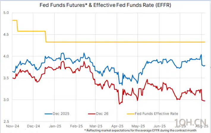 可能并非如此。近期美国疲软的数据重新为美联储降息打开了大门。上周五发布的惨淡就业报告(包括对前几个月数据的大幅下修)使得市场几乎完全预计美联储在9月17日的下一次联邦公开市场委员会(FOMC)会议上会降息,且预计2026年还会有更多降息举措。到明年9月,市场预计美联储有效利率将下降125个基点。
