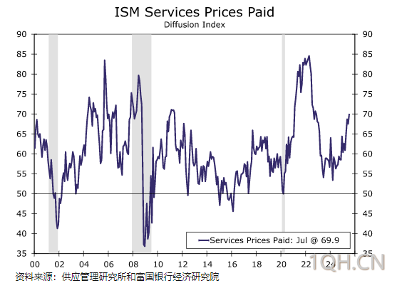 ISM服务业指数从6月的50.8跌至50.1已经是扩张转收缩的临界点,为2020年疫情以来第三低读数,仅略高于荣枯线。