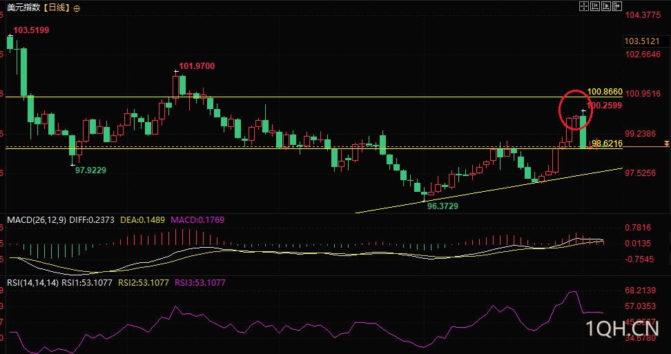 (美元指数日线图,来源:易汇通)
