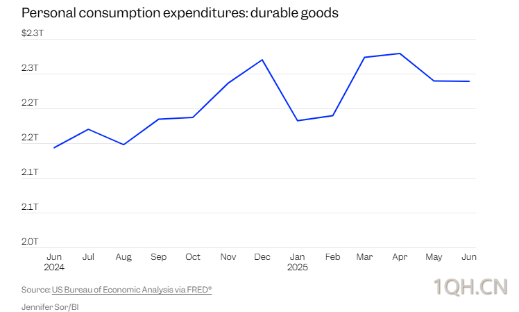美国人已经开始收紧他们的钱包。尽管总体上6月份消费者支出有所增加,但耐用商品的个人消费支出,即美国人在物品上的支出的一个衡量标准,6月份下降到了2.24万亿美元,比四月的峰值下降了大约400亿美元,根据经济分析局的数据。