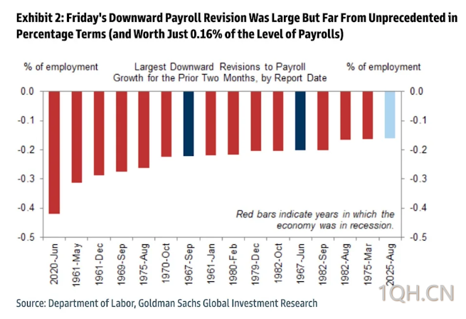 高盛的经济学家认为“美国就业市场现在正接近‘失速速度’——即劳动力市场开始以‘自我强化’的方式弱化。”同时高盛认为“由于就业数据的下调修订,其对潜在就业增长的估计已‘暴跌’,这与过去与衰退相关的其他两个月就业修订相当。经济学家们现在正专注于未来几个月的几个关键指标,这些可能是即将来临的衰退的早期预警信号。”