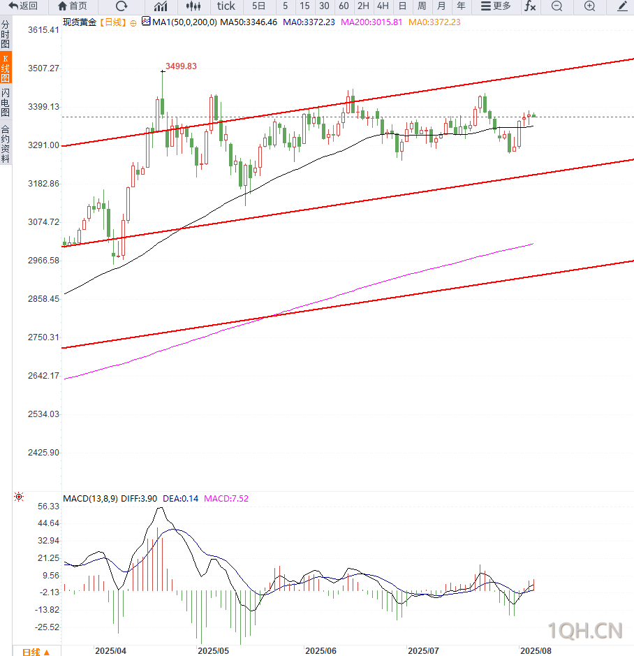尽管当前黄金价格短线承压,但在美国经济放缓、降息预期升温以及潜在贸易摩擦风险持续的背景下,黄金中期仍具支撑。短期走势料将围绕3400美元关口反复拉锯,可关注美联储官员讲话及下周即将公布的美国CPI数据,或为黄金提供新的方向指引。,