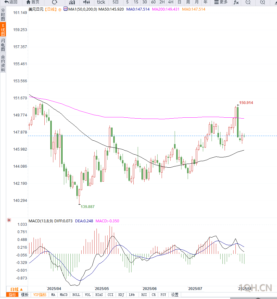 虽然日本央行在7月底会议中上调了通胀预期,并未完全关闭年内再次加息的大门,但行长植田和男上周的言论依然偏鸽派,强调政策仍需保持耐心。这一系列混合信号使得日元缺乏明确方向指引。