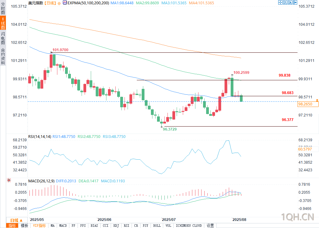 周二公布的ISM服务业指数进一步加剧了美元的看空情绪。7月整体指数降至50.1,低于6月的50.8以及51.2的共识预期。深入来看,价格指数飙升至69.9,为2022年初以来的最高水平,而就业指数进一步收缩至46.4。德意志银行分析师称该数据“令人担忧”,并指出特朗普加征关税的举措加剧了滞胀担忧。