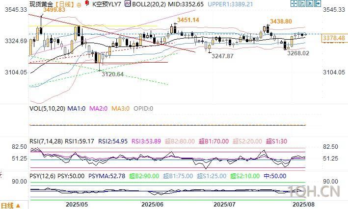 北京时间8月7日13:30 现货黄金 报 3379.18 美元/昂首,