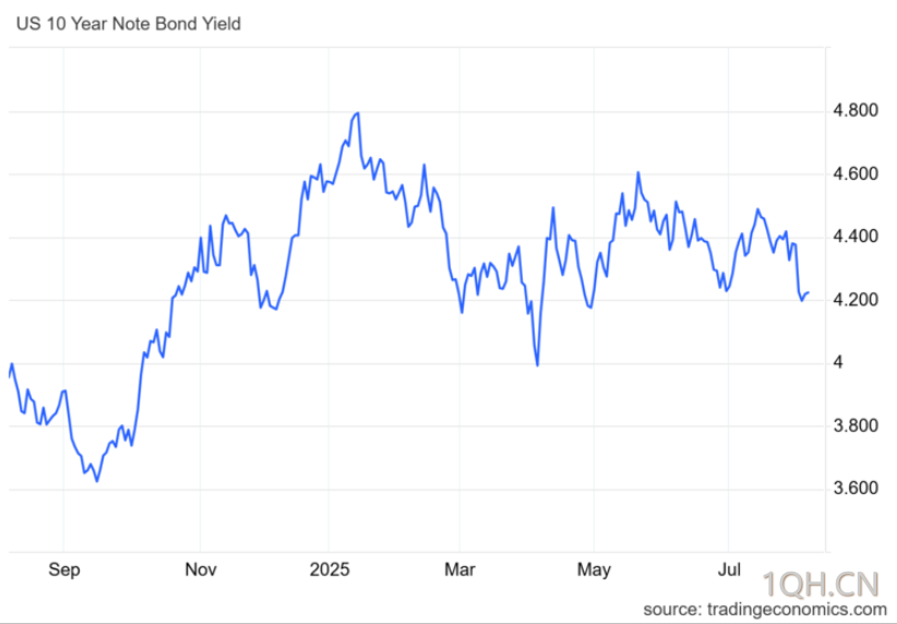 这些预期给美国国债带来压力,其收益率有所下降。10年期国债收益率已降至4.2%,这是数周来未见的水平。并表明市场开始预期低利率环境,降低了美元的吸引力。