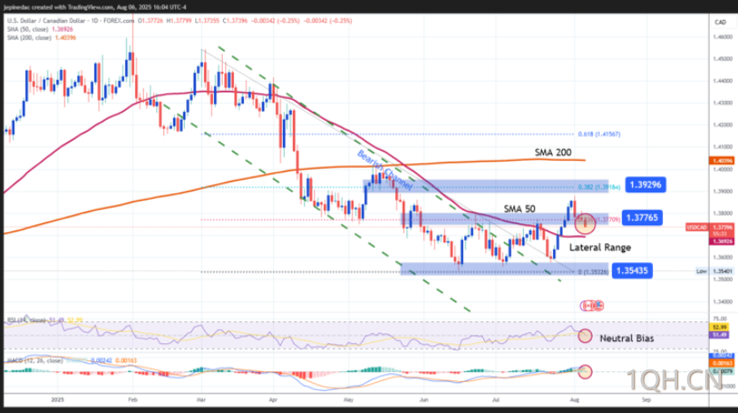 周四(8月7日)之前的四个交易日,美元兑加元连续下跌,回吐上周一半涨幅,反映出美元对加元走强的逐渐回落。这一走势是由市场对美联储货币政策预期的变化驱动的,这削弱了对美元的需求。与此同时,加拿大元因加拿大央行的中性立场和受控的通胀而受益,增强了其本币的稳定性。如果事态继续保持,美元兑加元在短期内可能继续承压。