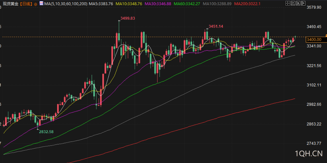 金价周四升至逾两周最高,美国总统特朗普的关税生效,以及美国就业数据强化降息预期,提振了避险需求。现货金上涨0.7%,至每盎司3392.65美元,盘中早些时候触及自7月23日以来最高。美国期金上涨 0.6%,结算价报 3453.7 美元。