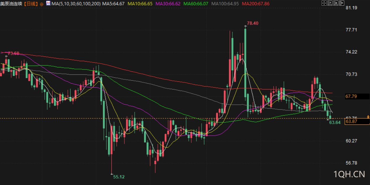 布伦特原油期货收跌0.7%,报每桶66.43美元。美国原油下跌0.7%,报63.88美元。