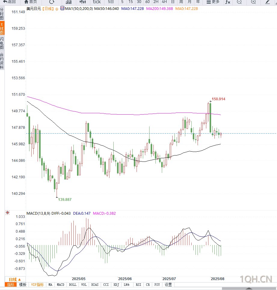 当前美元兑日元受多重因素交织影响,短期走势不明朗。日元因国内加息预期放缓和经济数据疲软而承压,但美联储的鸽派立场限制了美元上行空间,令汇价维持区间震荡格局。