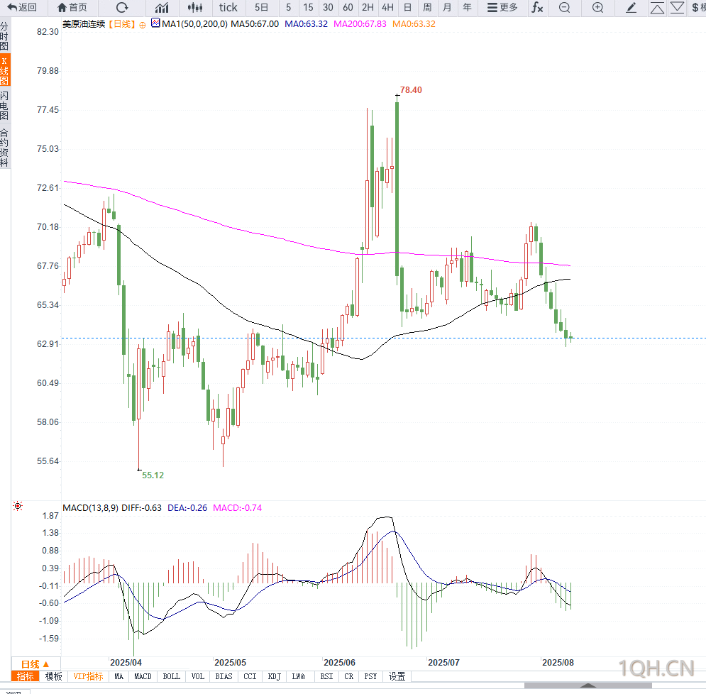市场对俄罗斯原油供应限制解除的预期升温,此前美国总统特朗普上周五宣布,将于8月15日在阿拉斯加与俄罗斯总统普京会晤,讨论结束乌克兰冲突的可能性。