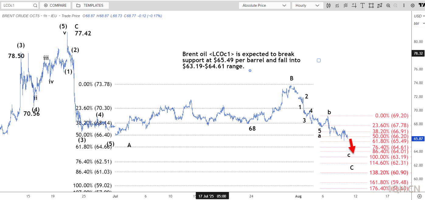 路透技术分析师预计,布伦特原油将跌破每桶 65.49 美元的支撑位,跌至 63.19 美元至 64.61 美元的区间。