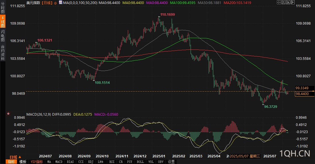 展望未来一周,美元与美债市场的走势将高度依赖即将发布的7月CPI数据及俄乌局势相关会谈的结果。若CPI数据确认通胀持续上行,长端美债收益率可能突破4.30,测试4.50的年内高点,美元指数则有望挑战100日均线(99.4597)。反之,若通胀数据低于预期,短端美债收益率可能进一步下行,美元指数或回落至98.00以下,测试50日均线支撑。收益率曲线的陡峭化趋势预计将延续,2年期与10年期收益率差可能进一步扩大至80-100个基点,反映市场对财政赤字和通胀预期的持续关注。