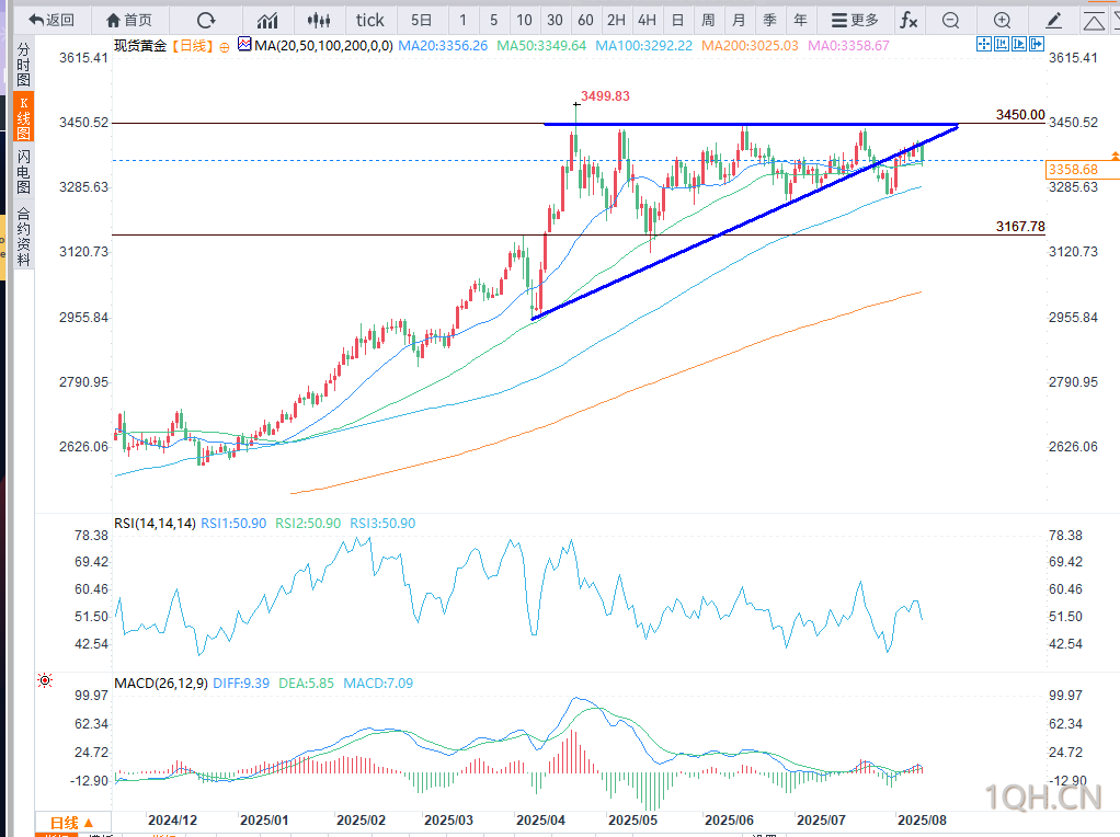 贸易谈判的进展也对金价构成影响。美国于8月7日正式实施对60多个贸易伙伴的报复性关税,将整体关税率推高至1934年以来最高的18.6%。与此同时,美中90天关税休战协议将于8月12日到期,市场正等待特朗普总统决定是否延长协议以继续谈判。