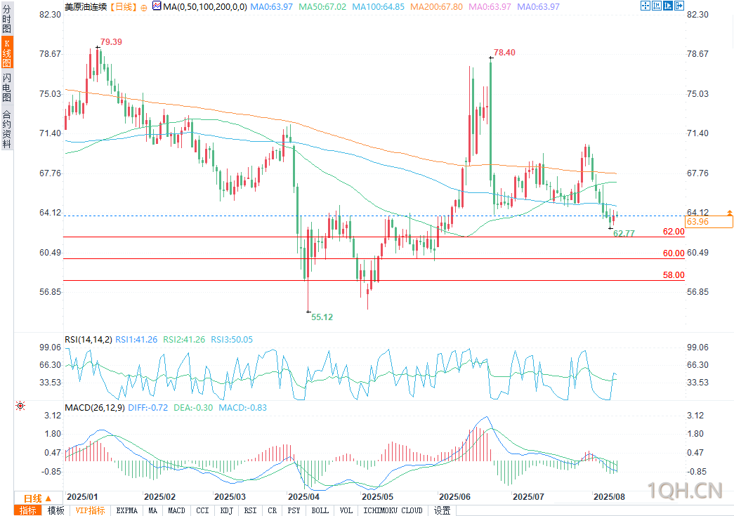 北京时间17:59,WTI原油报64.02美元/桶,涨幅0.09%。,