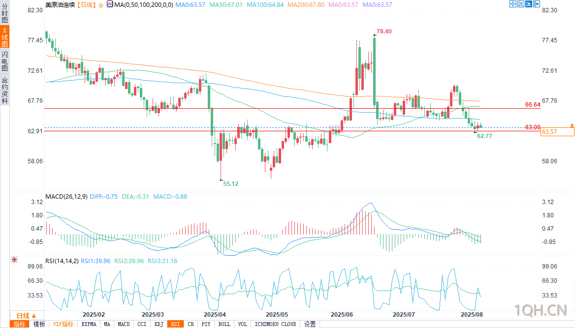 交易商不能忽视周五特朗普与普京计划在阿拉斯加举行的会晤。俄乌冲突的头条新闻风险仍然很大——推动和平可能会缓解制裁压力,而谈判破裂则可能意味着对印度等俄罗斯石油买家实施更严厉的惩罚。德国商业银行已经警告称,如果周五的会晤没有取得进展,次级制裁可能会扩大。这类事件无论图表走势如何,都可能在一夜之间导致油价暴涨或暴跌。