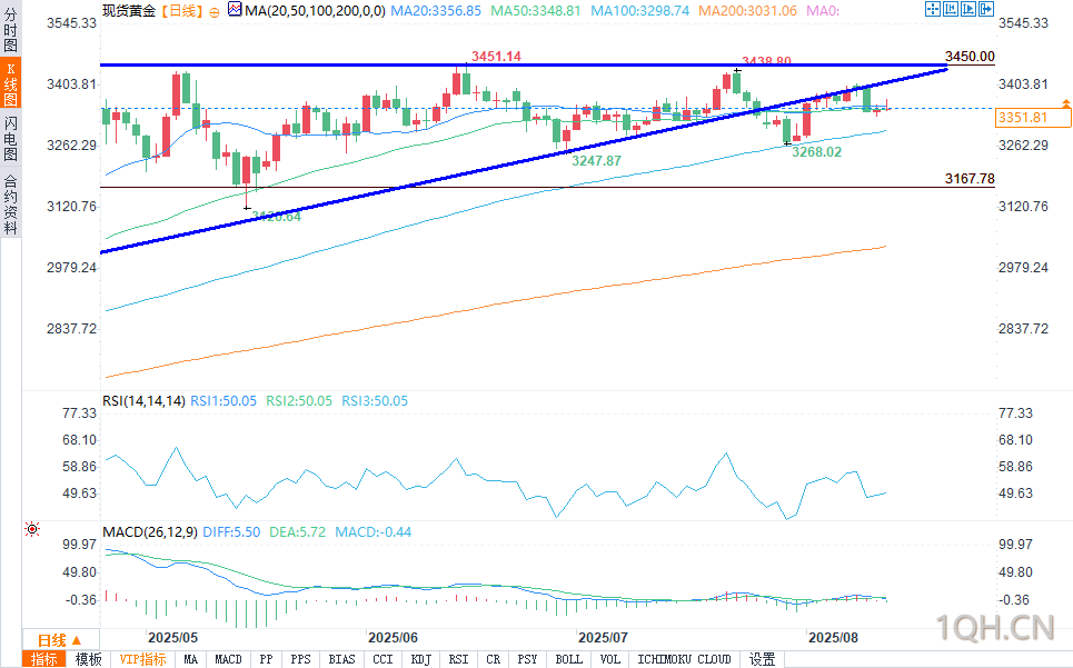 北京时间02:01,现货黄金报3352.25美元/盎司,涨幅0.13%。,