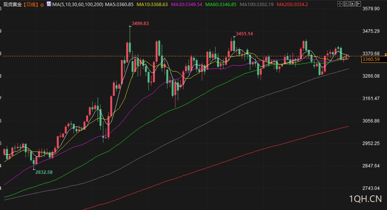 黄金周三上涨,受美元走弱和公债收益率下降提振。温和的美国通胀数据巩固了美联储9月降息的预期,并推高了对今年晚些时候进一步宽松政策的押注。现货金上涨0.3%,至每盎司3355.58美元。12月份交割的美国期金收高0.3%,报3408.3美元。