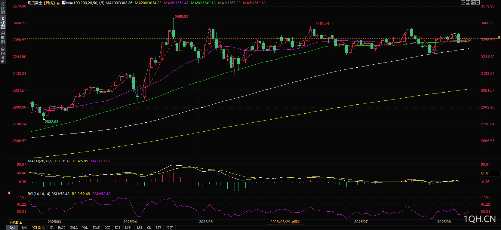下一阻力位见3380美元,继而上看3400美元关口。突破该水平后,6月16日高点3452美元及历史峰值3500美元将成为关键目标。反之,若日线收于3350美元下方,金价或下探100日均线3302美元支撑位。
