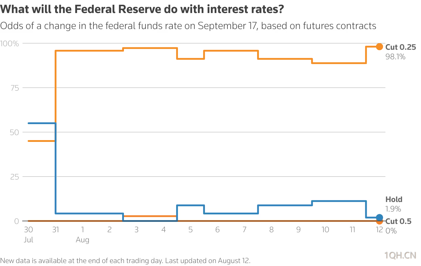 与此同时,7月的就业报告同样令人困惑。就业岗位增长远低于预期,前两个月的岗位增长数据还遭遇了有记录以来最大的下修幅度,这无疑敲响了警钟。然而,工资增长加快、工作时间增加以及失业率仅微幅上升,又为劳动市场注入了一些正面信号。这些矛盾的数据让市场和美联储都难以判断:劳动市场究竟是正在冷却,还是依然稳健?