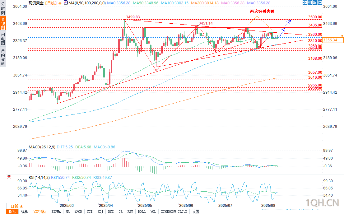 北京时间17:35,现货黄金报3356.56美元/盎司,涨幅0.02%。,