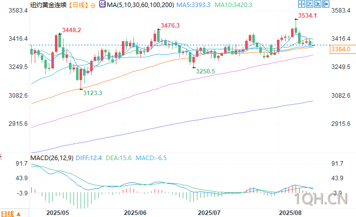 北京时间8月15日10:07 纽约黄金连续 报 3384.4 美元/盎司.,