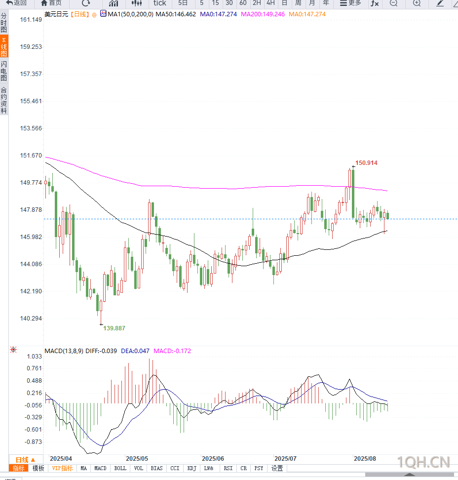 此外,美国总统特朗普与俄罗斯总统普京将在阿拉斯加会晤,讨论结束乌克兰冲突的方案,相关消息料将影响避险情绪,从而波动日元走势。
