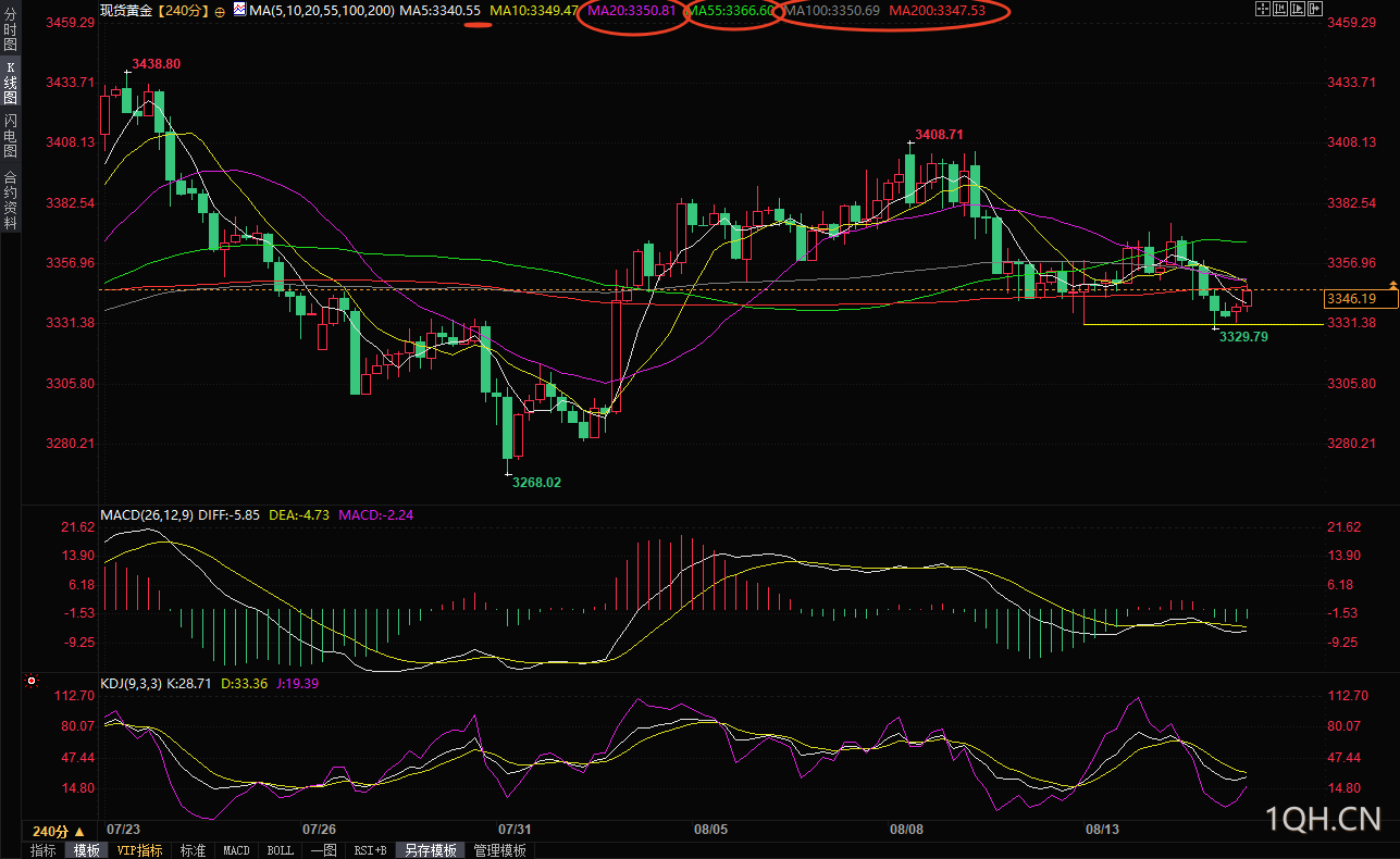 从4小时图来看,21后期均线下穿55周期均线,现货黄金目前还受到200周期均线3347.52美元附近阻力压制,20周期和100日均线均线阻力在3350关口附近,而55周期均线3364美元是短线阻力位所在,下方受到3330关口的支撑。