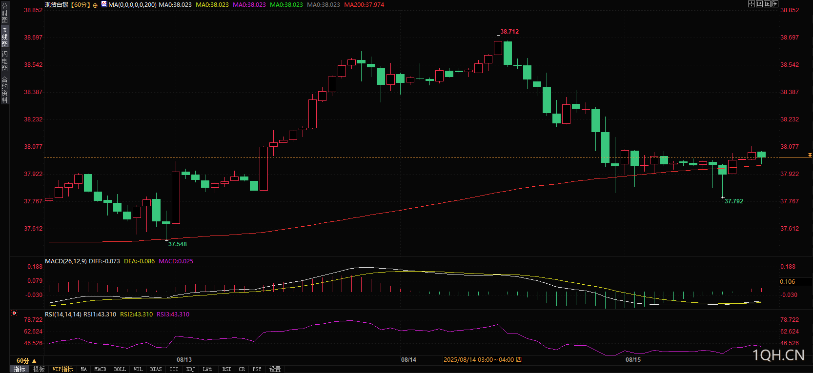 下行方面,若银价跌破37.80美元支撑,可能进一步下探37.50美元中段的关键支撑位,并测试37.00美元关口。持续跌破该水平将为空头提供新的做空信号,可能导致现货白银深度回调,甚至重新测试36.20美元附近的月内低点。
