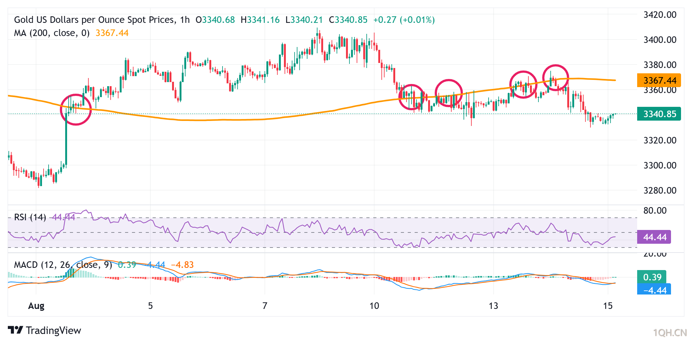 黄金走势在100小时均线关键阻力位(现位于3,355美元附近)下方显得尤为脆弱