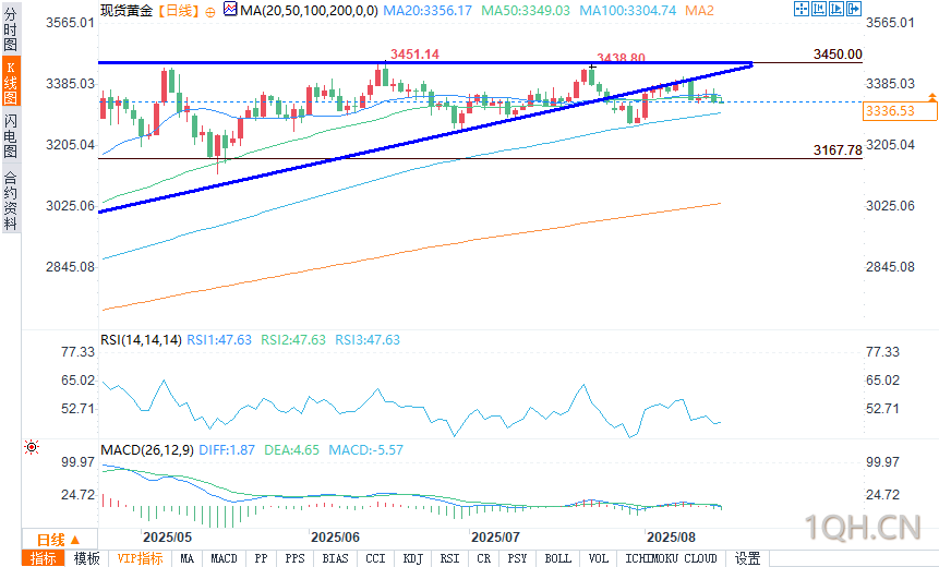 在经济数据方面,本周的信号喜忧参半。尽管市场普遍预计美联储将降息,但周四公布的美国7月份生产者价格指数(PPI)创下三年来最大涨幅,这一疲软的通胀数据使得市场对美联储9月份降息25个基点的预期有所减弱。这导致无收益黄金价格在数据公布后应声下跌。