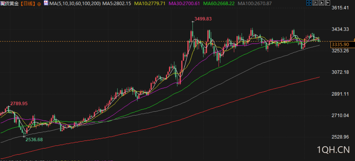 现货金基本持平于每盎司 3336.66 美元,本周下跌 1.8%。美国期金结算价基本持平于 3382.6 美元。