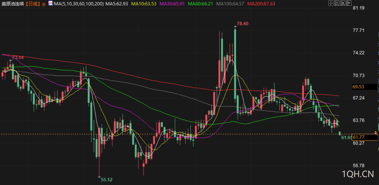 布论特原油期货收低1.5%,报每桶65.85美元;美国原油期货收低1.8%,报62.80美元。