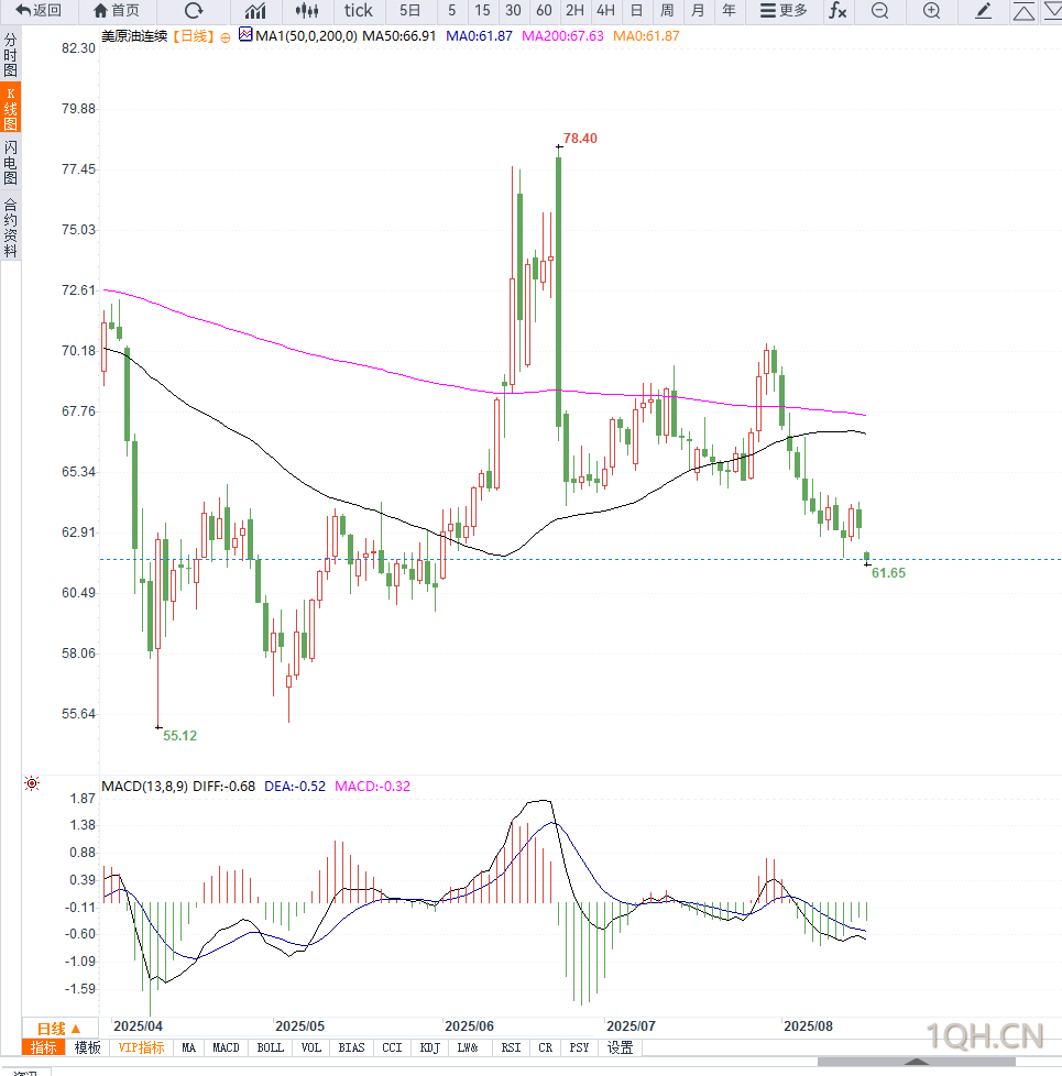 MACD动能柱仍处于收缩阶段,显示空头力量有所减弱,但多头尚未形成有效突破。若后续消息面不利于供应收紧,油价可能在60-65美元区间震荡整理,突破方向仍需依赖地缘局势和美联储政策信号。