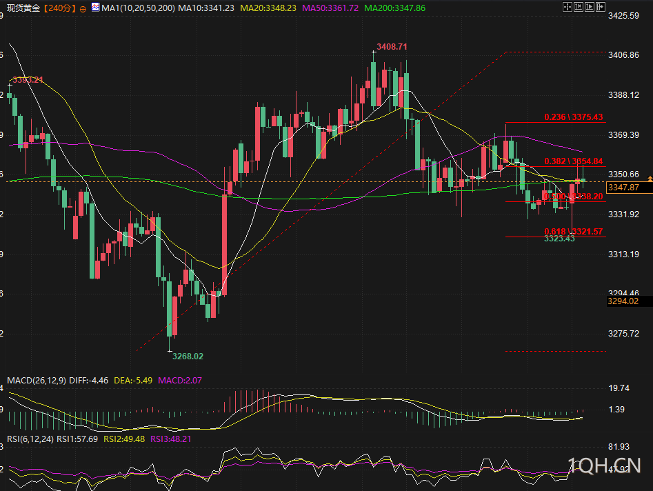 (现货黄金4小时图,来源:易汇通)