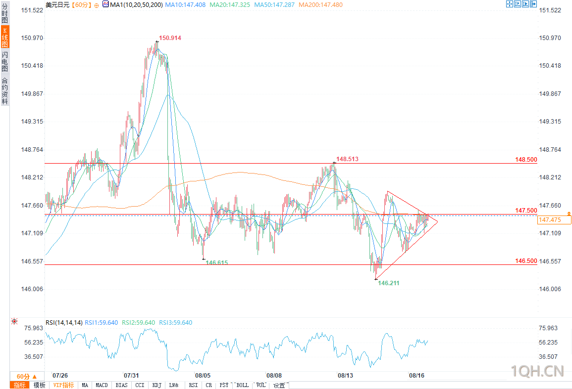 关键阻力位:147.50(200小时均线)、148.50(近期区间上限)。