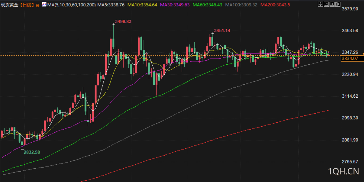 现货金小幅下跌至每盎司3333.32 美元,盘中稍早触及8月1日以来的最低水平。12月交割的美国期金12 下跌0.1%,结算价报3378美元。
