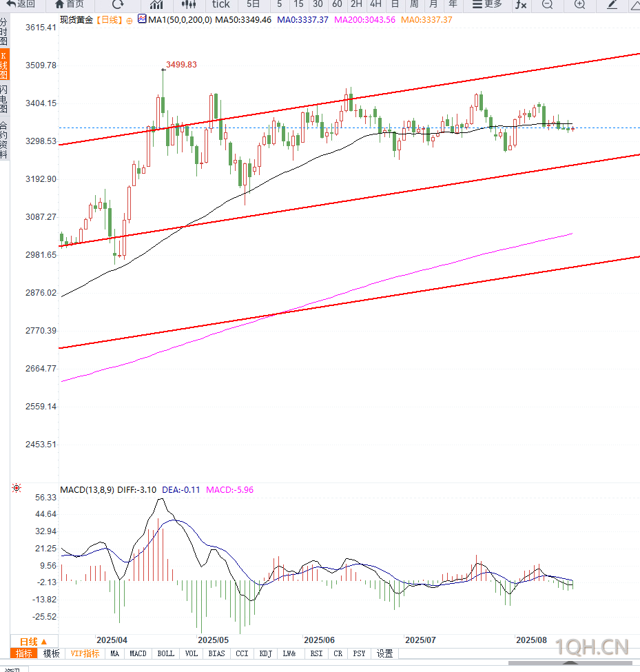 当前金价在3325美元上方企稳,但上方3350美元区域(200日均线所在)构成强阻力。若突破3358美元,将有望挑战3374美元甚至3400美元整数关口。