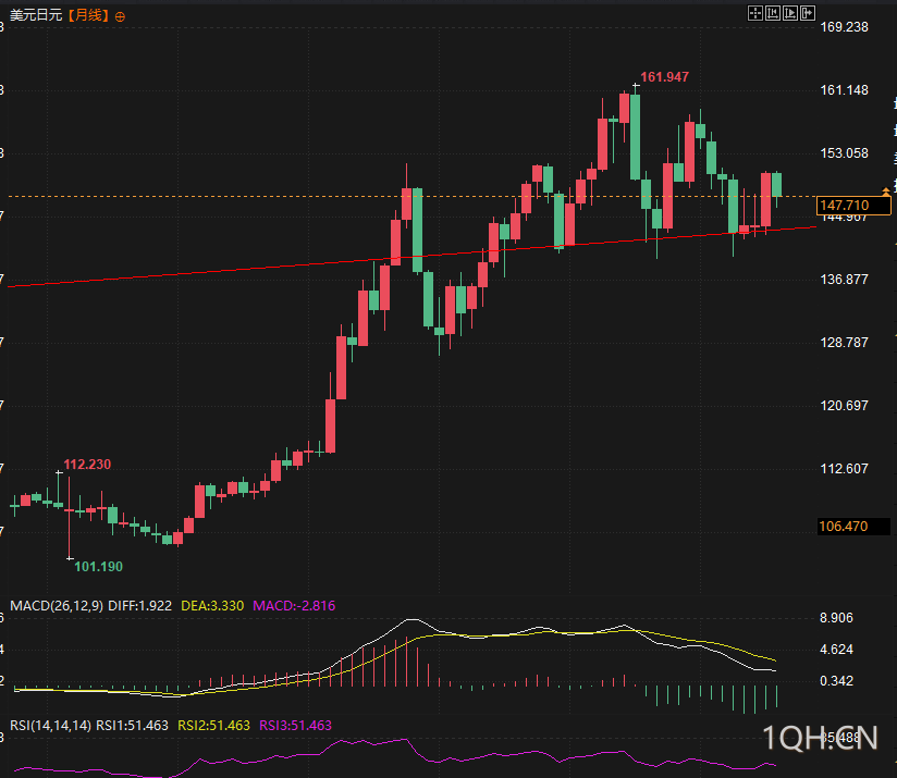 另一方面,任何修正性下跌都可能会在147.10-147.00区域附近找到良好的支撑。如果跌破这个区域可能会使美元兑日元对重新测试上周四触及的多周低点146.20区域,同时使走势变得脆弱。如果后续汇价没法达到147.73左右,随后跌破146.00关口趋势转空开始构筑月线级别的大型的看跌趋势,预示日元开启快速升值。